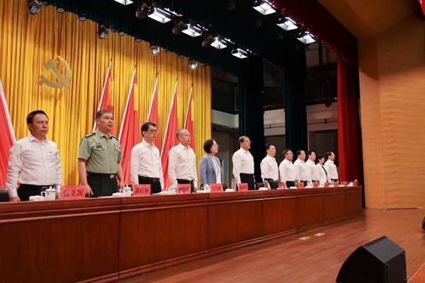 市委副書記、市委政法委書記張桂華,市人大常委會黨組書記、主任王國斌,市政協黨組書記、主席王均成,市委常委燕元沂、謝勝利、汪元程、黃桂林、周正英、張立新、劉豐雷等出席會議。(記者 雷鵬程 攝影 黃翔)